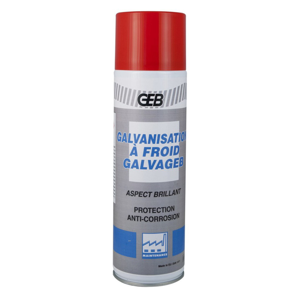 La Galvanisation à Froid Galvageb permet l’application d’un revêtement de protection contre la rouille et la corrosion. | - Protection des métaux ferreux, des alliages légers et des surfaces galvanisées endommagées. | - Résiste très bien dans les atmosphères salines et aux températures élevées grâce à sa haute teneur en zinc. | Compatible avec tous les procédés de soudage (sauf argon). | Aspect brillant.