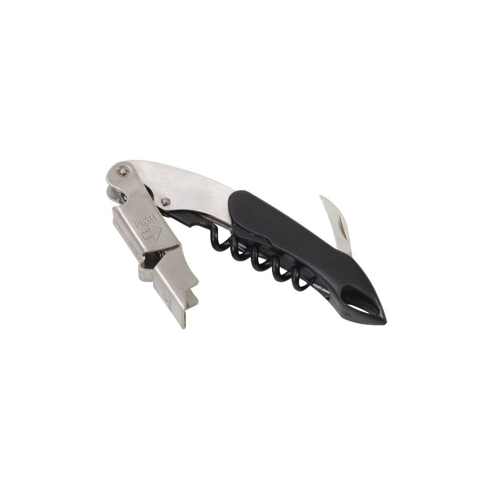 Deux outils supplémentaires sont intégrés pour une utilisation complète : un coupe-capsule pour trancher proprement la capsule avant ouverture, et un décapsuleur pour les bouteilles à capsule couronne. Un accessoire tout-en-un, idéal pour les amateurs de vin comme pour les professionnels de la restauration.