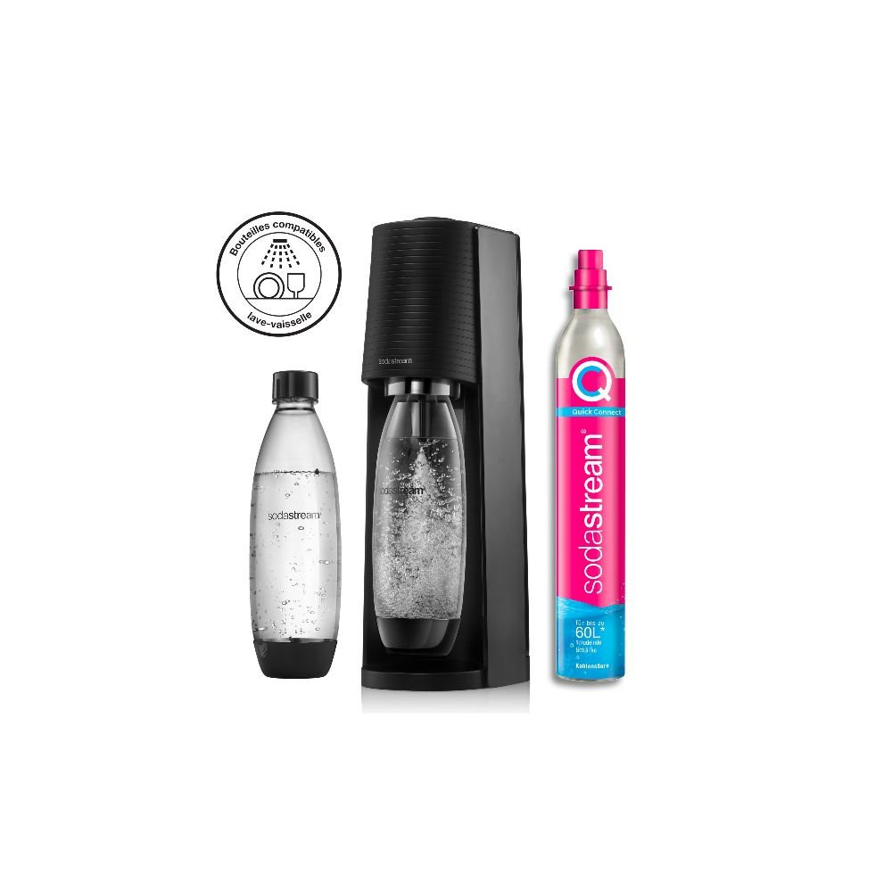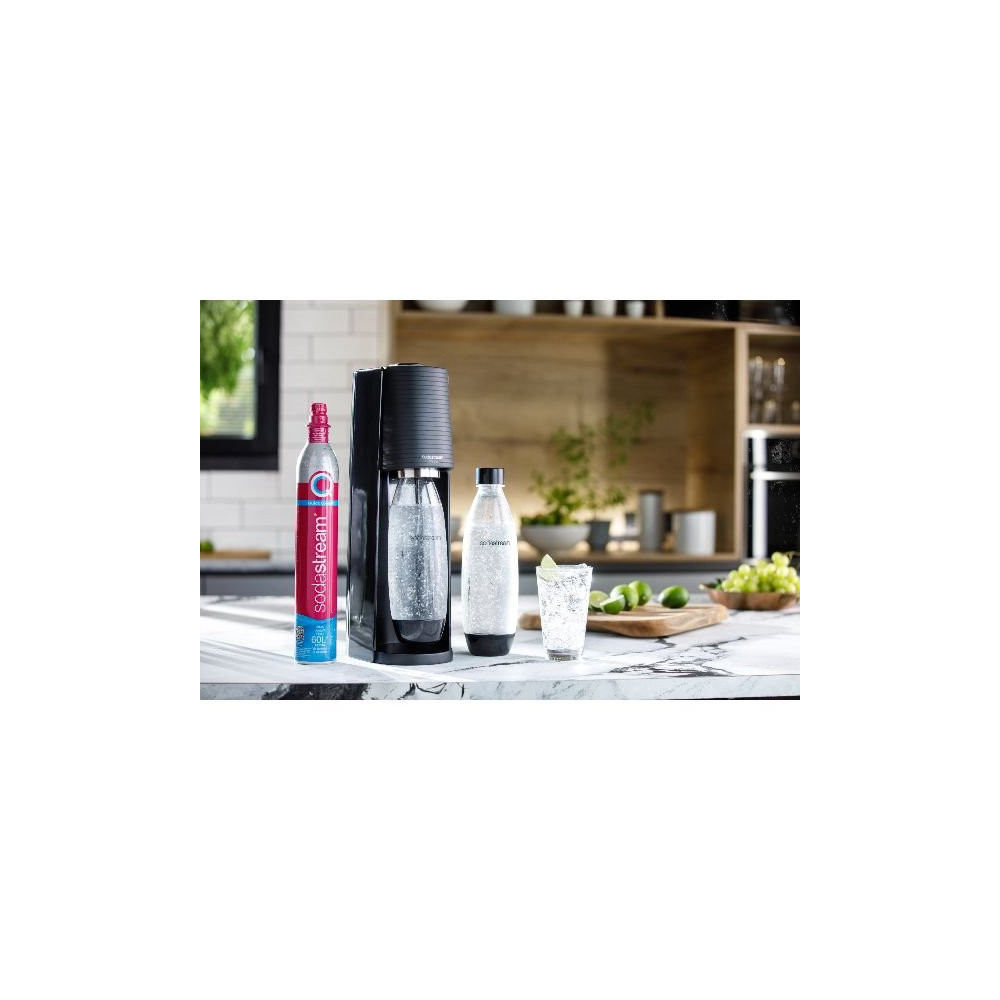 Dites adieu aux bouteilles d'eau pétillante à usage unique avec la machine à gazéifier SodaStream Terra en coloris noir. Élégante et compacte, cette machine au design contemporain s'intègre parfaitement dans toute cuisine moderne et vous permet de préparer de l'eau gazeuse maison en quelques secondes, selon le niveau de carbonatation qui vous convient.