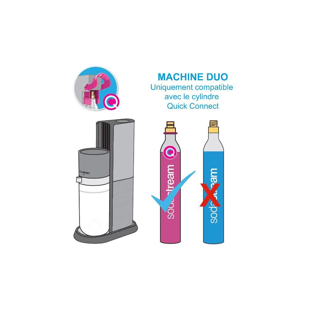 Existe en plusieurs coloris Machine à gazéifier Blanche - Duo - Libérez vos bulles en toute simplicité ! - Facile à utiliser, cette machine vous invite à partager des moments pétillants ! - Faites de l'eau pétillante à volonté et sans effort ! - Préparez votre eau gazeuse avec la machine Sodastream, puis aromatisez votre eau gazeuse avec les saveurs Sodastream et dégustez ainsi une délicieuse boisson pétillante à votre goût ! - Cette machine vous permettra de réaliser votre eau gazeuse ou vos so