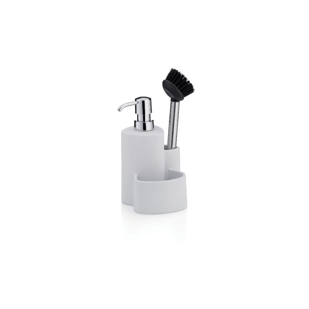 Organisateur d'évier, distributeur de savon - Céramique douce au toucher - Dimensions : 11 x 10 x 22 cm - Capacité : 35 cL.