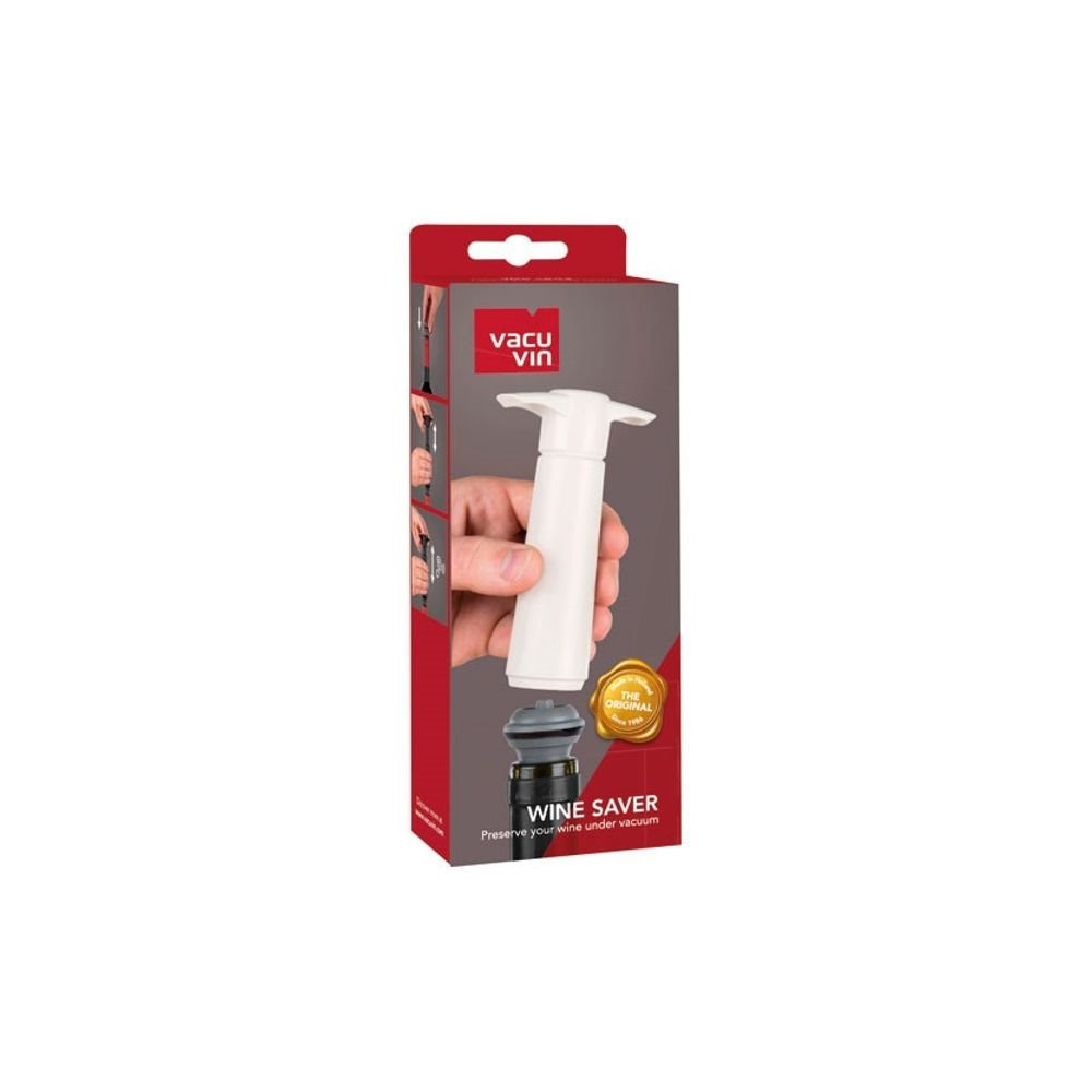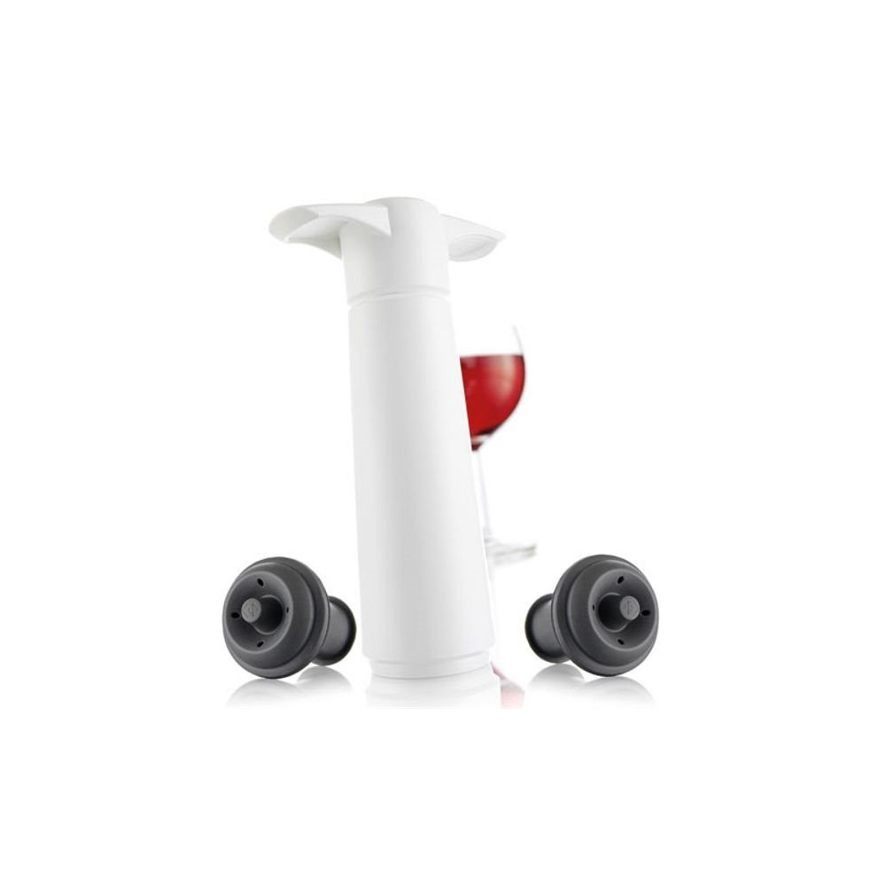 Le principe est celui de la mise sous vide : la pompe extrait l'air présent dans la bouteille avant de la refermer hermétiquement grâce à l'un des 2 bouchons hermétiques inclus dans le coffret. En éliminant l'oxygène responsable de l'oxydation, elle préserve la structure, la couleur et les notes aromatiques du vin. Le coffret se présente dans un sobre et élégant coloris blanc.