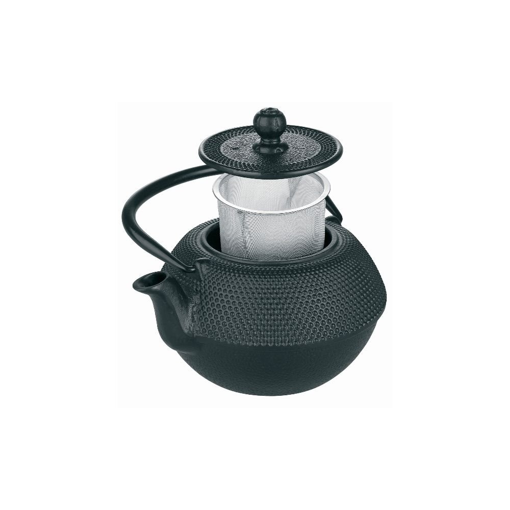 Sobre, élégante et résolument fonctionnelle, la théière en fonte noire IBILI d'une capacité de 0,72 litre s'adresse à ceux qui apprécient l'art du thé dans toute sa plénitude. Avec son coloris noir mat et sa silhouette arrondie inspirée des traditions orientales, elle s'intègre aussi bien dans une cuisine contemporaine que dans un intérieur plus traditionnel.
