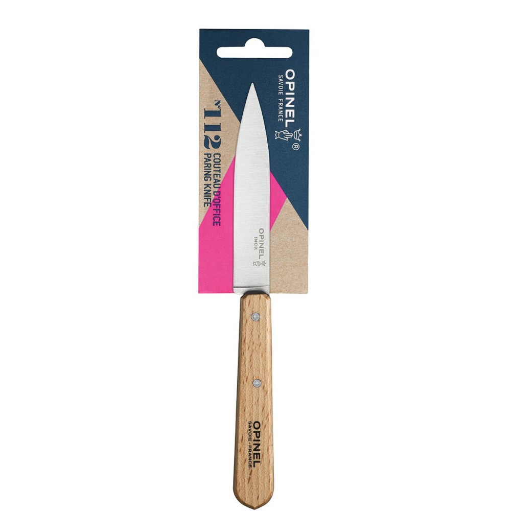Le couteau d'office Opinel N°112 est le couteau utile dans la cuisine. | Lame de 10 cm en acier Inoxydable qui assure une coupe de haute qualité. | Son manche en bois de hêtre naturel verni offre un côté rustique et traditionnel à votre cuisine. | Maniable, efficace et complémentaire.