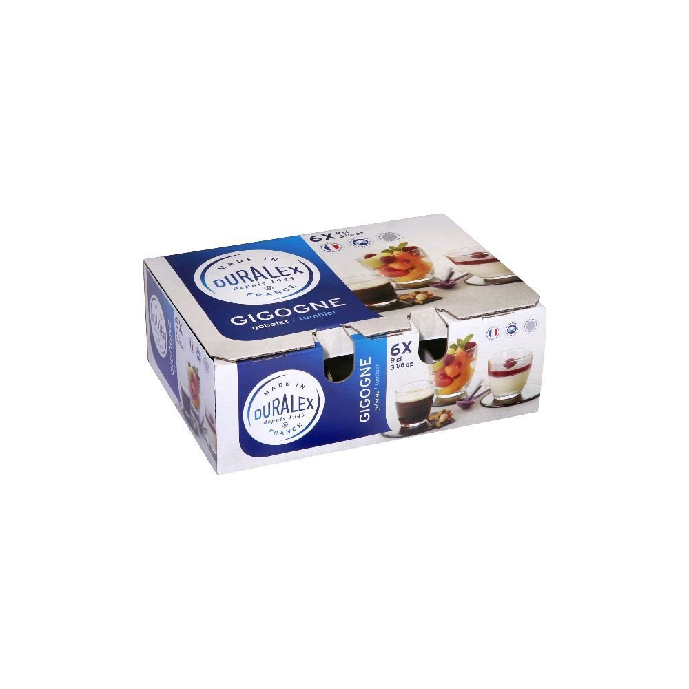 Petit format, grand caractère : le gobelet Duralex Gigogne 9 cl est le verre à eau et à boissons courtes par excellence. Ce lot de 6 gobelets perpétue la tradition de la verrerie française avec des courbes douces et reconnaissables, qui rappellent immédiatement les tables conviviales d'autrefois. Parfait pour habiller une table de 6 couverts sans débourser une fortune.