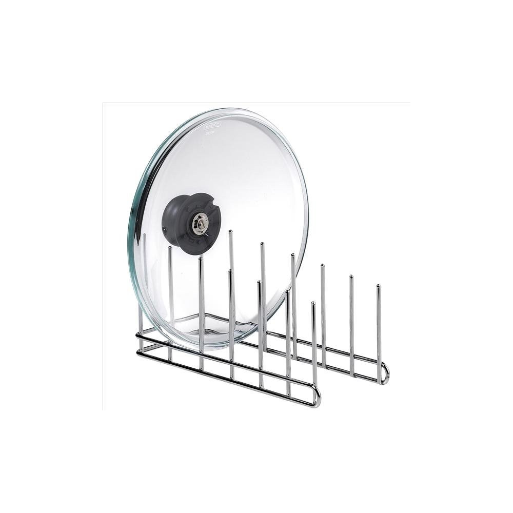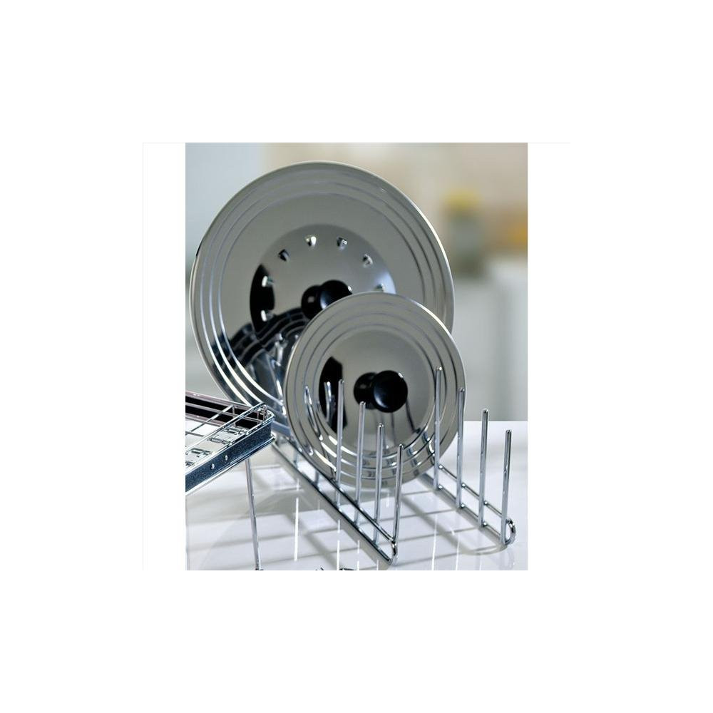 Sa polyvalence est l'un de ses principaux atouts : pensé initialement pour les couvercles de toutes tailles, il s'adapte parfaitement aux grands plats de service et aux assiettes de présentation qui ne rentrent pas dans les rangements classiques. Il peut aussi accueillir des planches à découper ou des couvercles de poêles, offrant ainsi un espace dédié qui simplifie le quotidien en cuisine.