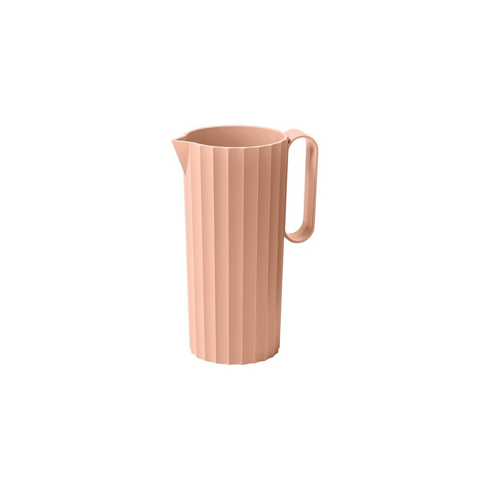 Existe en plusieurs couleurs Carafe 1,7 L Rose Sable - Paestum Hydria - Collection à la beauté intemporelle et aux formes essentielles et coniques - Sa surface cannelée et opaque créée des jeux d'ombres et de lumières - Idéal pour des repas en plein air - 100 % recyclable : en plastique durable et résistant aux chocs - Capacité 1,7 L - Fabriqué en Italie.