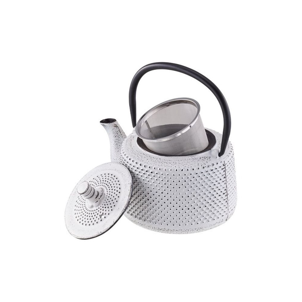 Théière 0.8 L en fonte Blanche - Jito - Une théière au look zen et apaisant avec sa douce couleur blanche et son motif en relief - Un esprit oriental authentique pour une pause détente parfaite - En fonte : un matériau idéal pour conserver le thé à la bonne température durant l'infusion et la dégustation - Sa capacité de 0.8 L vous permet de partager votre thé avec vos amis ou votre famille - Filtre amovible en acier inoxydable micro-perforé pour une infusion parfaite de votre thé en feuilles ou