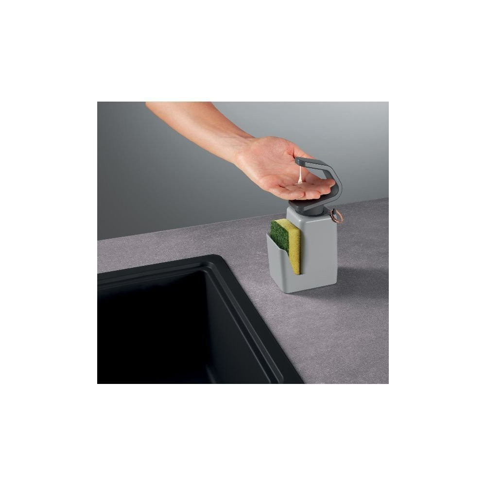 La fonction porte-éponge intégrée est l'atout majeur de ce modèle : elle permet de ranger l'éponge proprement, hors de l'eau stagnante, pour une hygiène améliorée et une cuisine mieux organisée. Ce duo savon + éponge en un seul accessoire simplifie le plan de travail et réduit l'encombrement autour de l'évier.