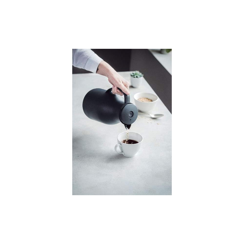 Son corps en polypropylène gris mat bénéficie d'une double paroi isotherme qui isole thermiquement le contenu et évite la condensation sur l'extérieur. La capacité de 1 litre est idéale pour servir plusieurs personnes sans avoir à remplir fréquemment. Sa conception légère et ergonomique permet de le manipuler d'une seule main, un confort appréciable lors du service à table.