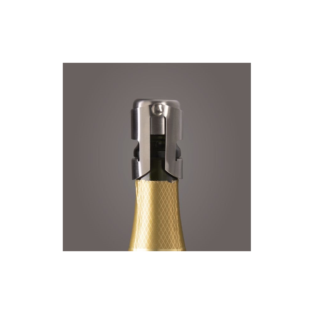 Fabriqué en acier brossé de qualité, ce bouchon marie élégance et robustesse. Sa finition soignée lui confère un aspect premium qui s'intègre parfaitement à une table dressée avec soin. Le système de fermeture par clip s'adapte à la majorité des goulots standards de bouteilles de champagne et de vins mousseux.