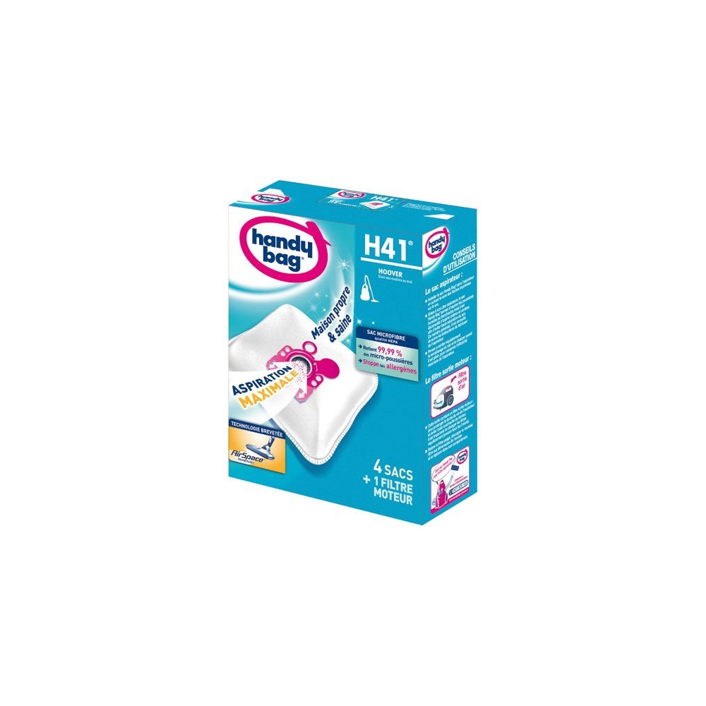 Spécialement conçus pour les aspirateurs Hoover référence H41, les sacs aspirateur HANDY BAG en non-tissé garantissent des performances de filtration fiables et une compatibilité parfaite avec votre appareil. Vendus par lot de 4 sacs, ils assurent une continuité d'utilisation sans interruption et représentent un achat économique pour l'entretien courant.