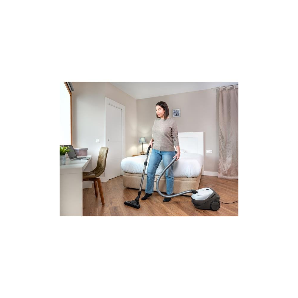 Le système à sac assure une collecte hygiénique de la poussière, limitant les remises en suspension lors du vidage. Le filtre EPA E10 est particulièrement appréciable dans les foyers sensibles aux allergènes. Compact et maniable, cet aspirateur NILFISK One blanc convient parfaitement aux petits et moyens logements où le rangement est une contrainte quotidienne.