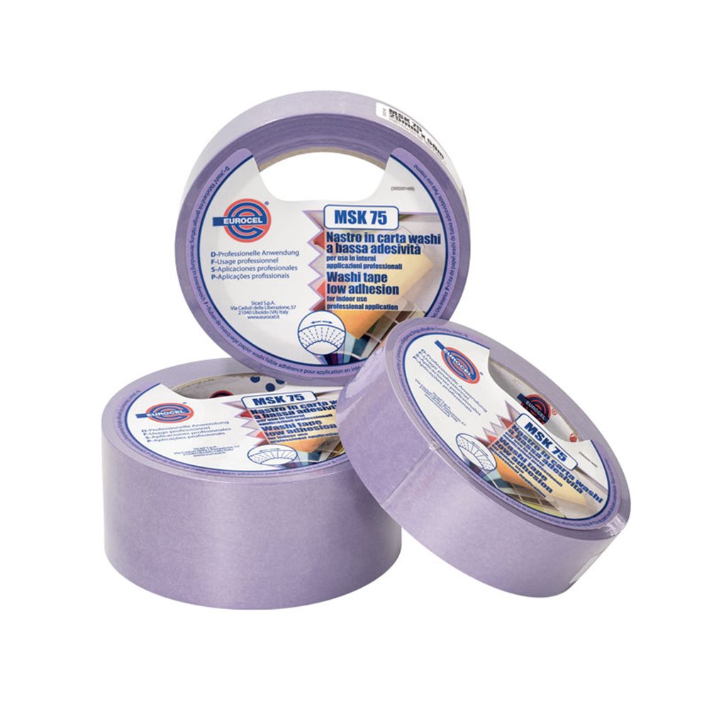Sa constitution en papier de riz extra fin lui confère une excellente souplesse et une bonne conformabilité pour épouser les surfaces planes ou légèrement moulurées. La couleur mauve caractéristique de la gamme MSK75 facilite son identification rapide sur le chantier et le distingue clairement des rubans à adhérence standard qui pourraient endommager les supports délicats.