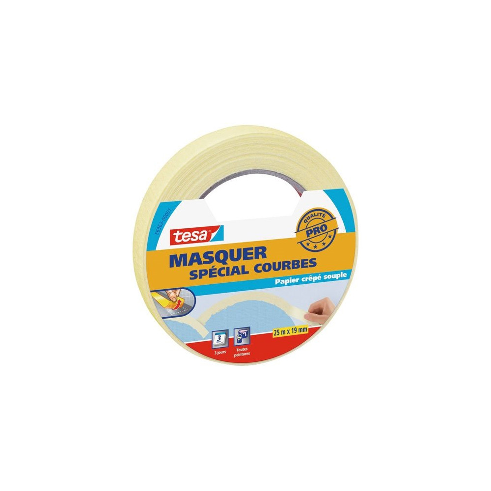Adhésif de masquage particulièrement souple pour les formes irrégulières et les courbes sur surfaces lisses et rugueuses.