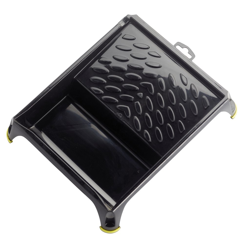 Bac pour rouleaux jusqu'à 180 mm de large. Grille intégrée, bec verseur, porte pinceau. Ses 4 pieds "soft" anti-glisse assurent une grande stabilité et bloquent littéralement le bac sur son support. Idéal pour l'utilisation d'un rouleau avec une rallonge.