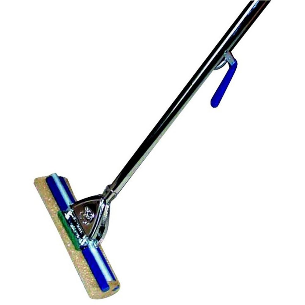 Manche acier chromé. | Eponge synthétique avec grattoir. | Longueur : 1.33 m | Très pratique et robuste. | Avec poignée essoreuse. | Qualité supérieure.