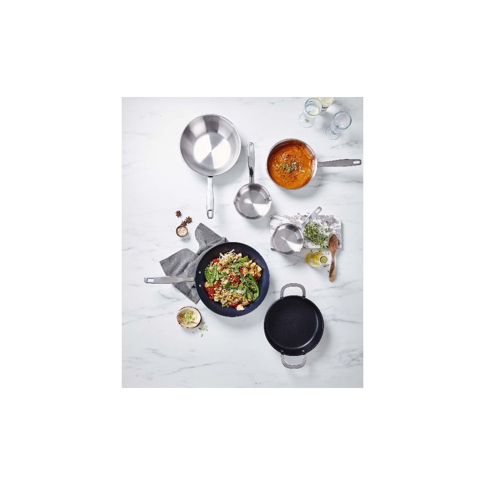 La casserole 14 cm Maestro de BEKA s'inscrit dans une gamme pensée pour ceux qui ne font aucun compromis en cuisine. Chaque pièce de la collection Maestro a été conçue avec une attention particulière portée à la fonction, à l'ergonomie et à la durabilité. Cette casserole de 14 cm de diamètre est idéale pour les petites préparations du quotidien : sauces, œufs, riz ou légumes.