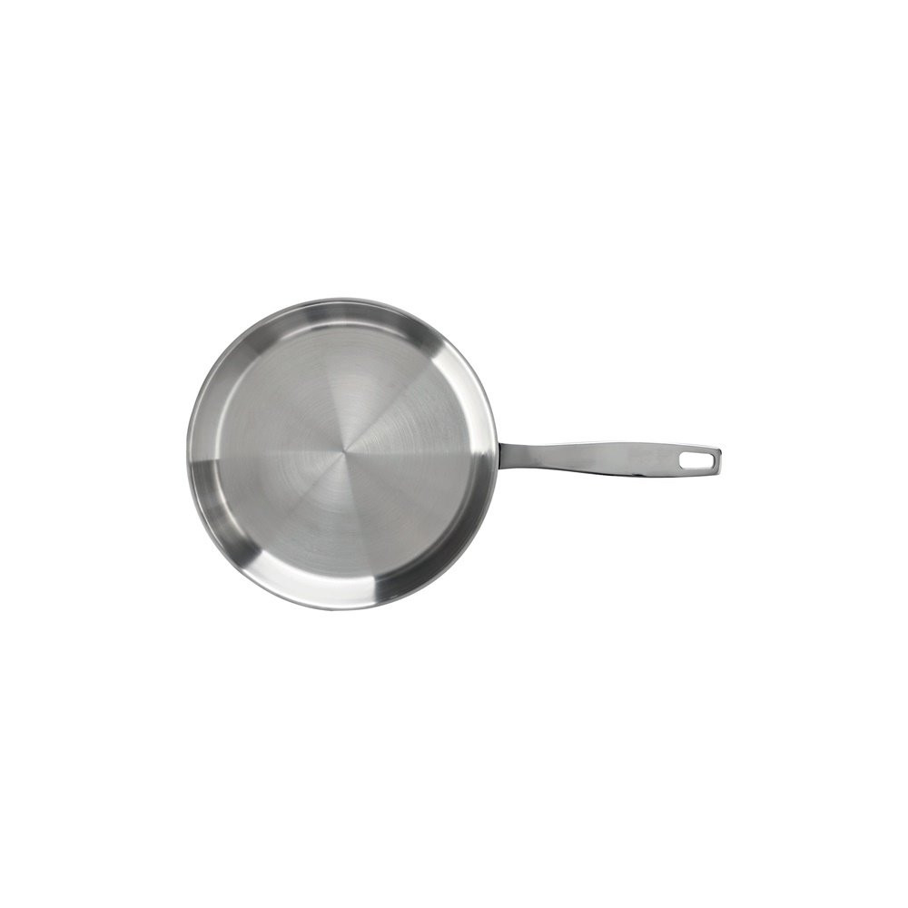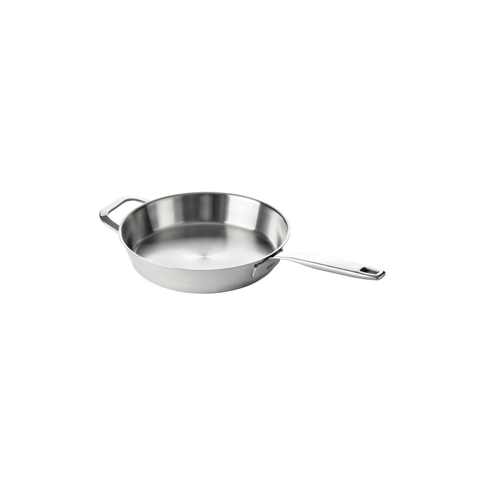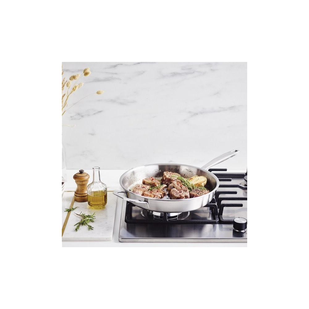 Grâce à sa grande surface en inox, cette poêle excelle pour saisir des pièces de viande, faire revenir des légumes en grande quantité ou préparer des omelettes généreuses. L'inox 18/10 garantit une répartition homogène de la chaleur et une montée en température rapide, pour des résultats de cuisson précis et reproductibles.