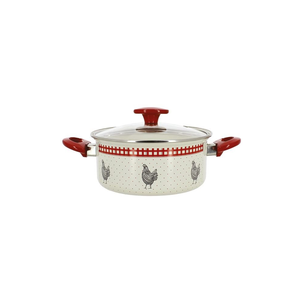 Réalisé en acier émaillé d'une épaisseur de 0,7 mm, ce faitout de 24 cm de diamètre monte rapidement en température et distribue la chaleur de façon régulière sur toute sa surface. L'émail, appliqué directement sur l'acier, assure une surface alimentaire saine, simple à nettoyer et imperméable aux odeurs. Le décor, directement inspiré de la tradition rurale française, est intégré à l'émail pour une durabilité optimale sans risque d'écaillage.