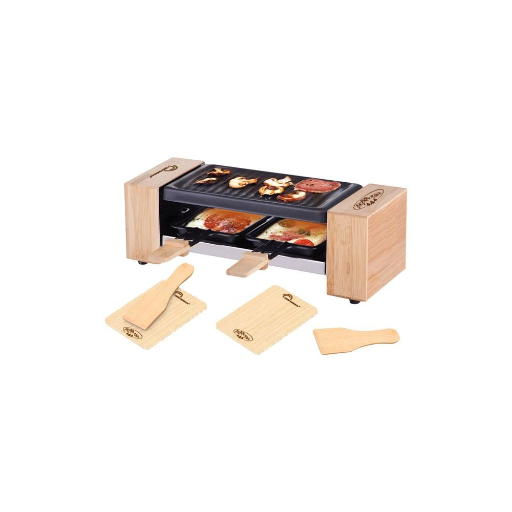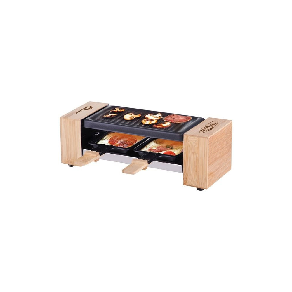 Malgré son gabarit miniature, cette raclette offre toutes les fonctions attendues d'un appareil de qualité : le plateau grill permet de faire griller viandes et légumes pendant que les poêlons assurent une fonte homogène et maîtrisée du fromage. Un format parfaitement dimensionné pour 2 convives qui souhaitent profiter de l'expérience raclette sans sortir un grand appareil.