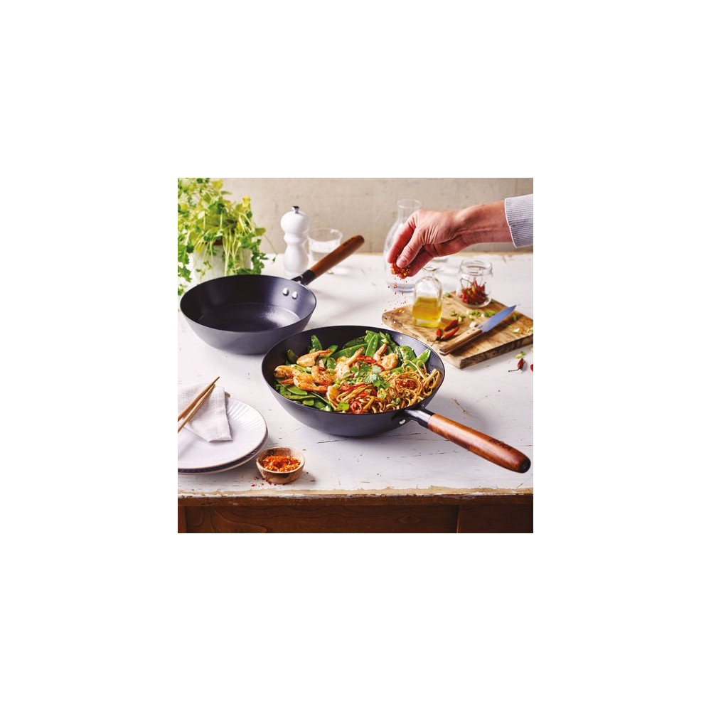 Conçue en fer de haute qualité, cette poêle wok de 24 cm de diamètre est dotée d'un revêtement antiadhésif en céramique qui garantit une cuisson saine, sans accrochage et facile à nettoyer. Sa structure assure une montée en température rapide et homogène, indispensable pour réussir les cuissons sautées à haute température. Parmi ses caractéristiques clés :