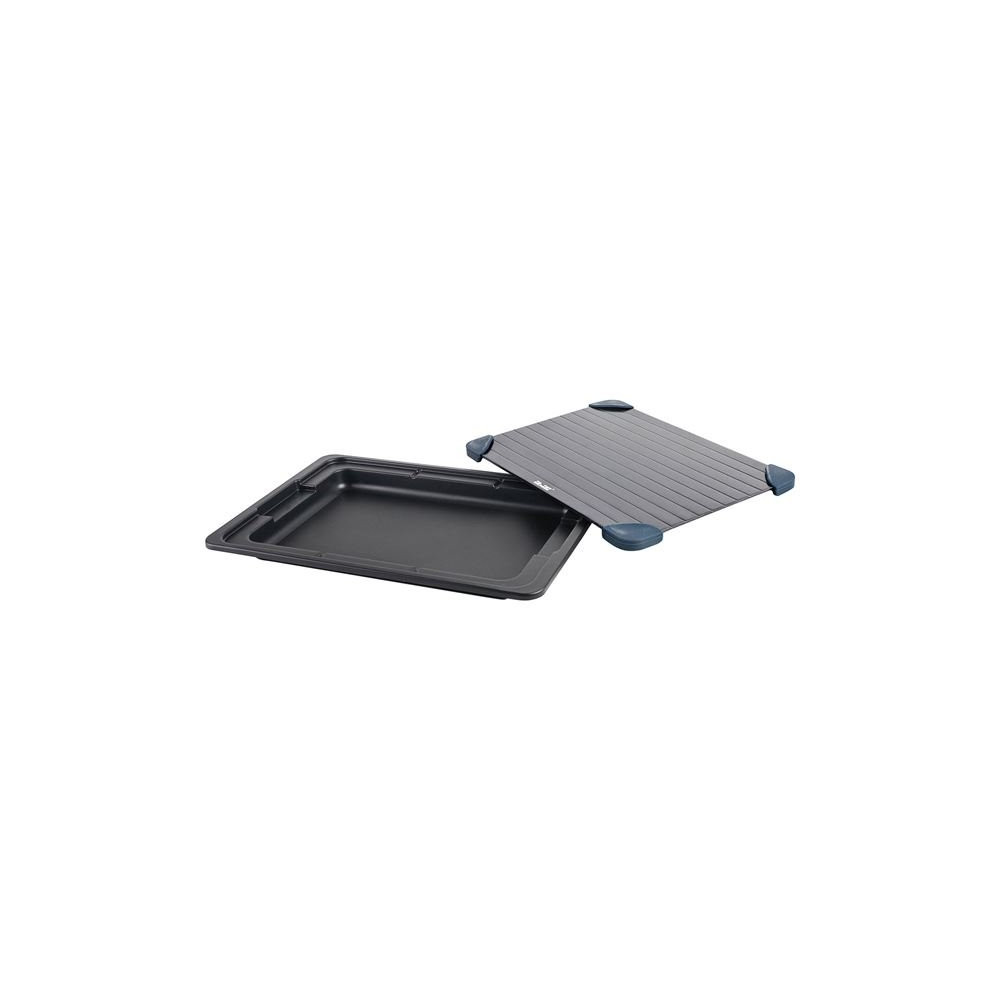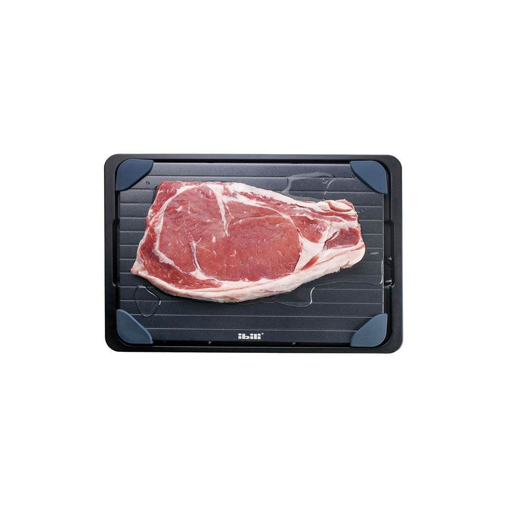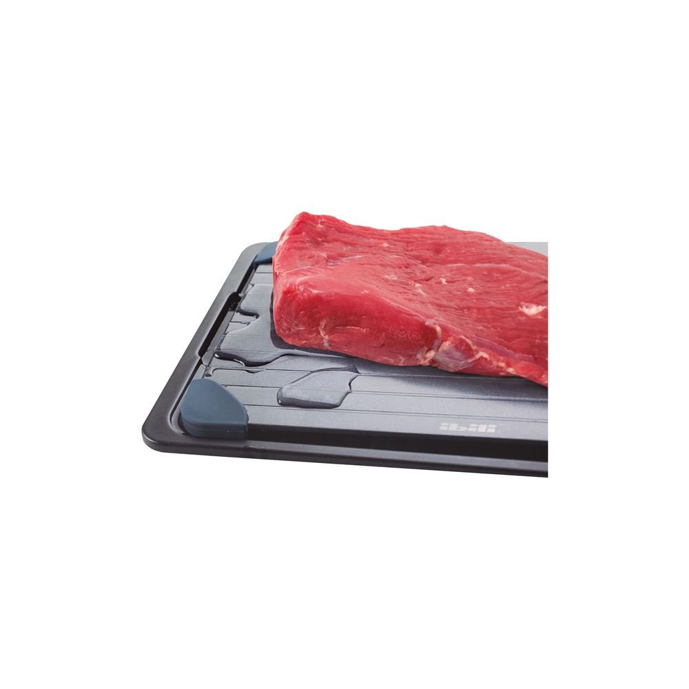 En cuisine, le gain de temps est précieux. Cette plaque permet d'éviter la décongélation au micro-ondes qui peut altérer la texture des aliments, tout en restant bien plus rapide qu'une simple attente à température ambiante. Le bac inférieur assure un plan de travail propre en captant les liquides qui s'écoulent naturellement lors de la décongélation.