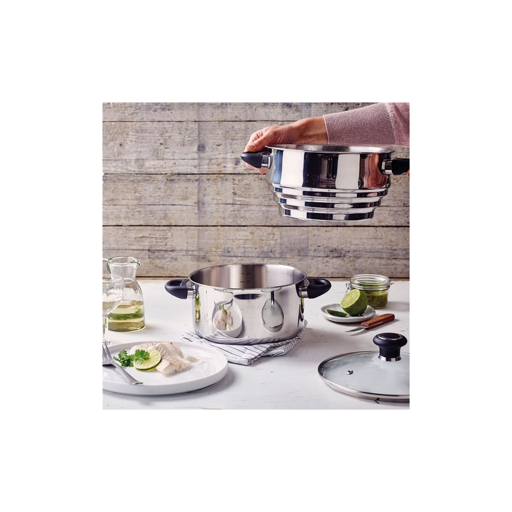 Passoire vapeur multi-diamètre 16/20 cm - Polo - Une gamme intemporelle en acier inoxydable pour une utilisation au quotidien ! - Cette gamme POLO comprend non seulement des casseroles et des poêles traditionnelles mais aussi un combiné vapeur et un couscoussier : l'idéal pour préparer de délicieux plats sains ! - Cuire à la vapeur est une façon saine de préparer les aliments : cela préserve jusqu’à 50% des nutriments dans les aliments et aucune graisse est nécessaire pour de la cuisson ! - Idéa
