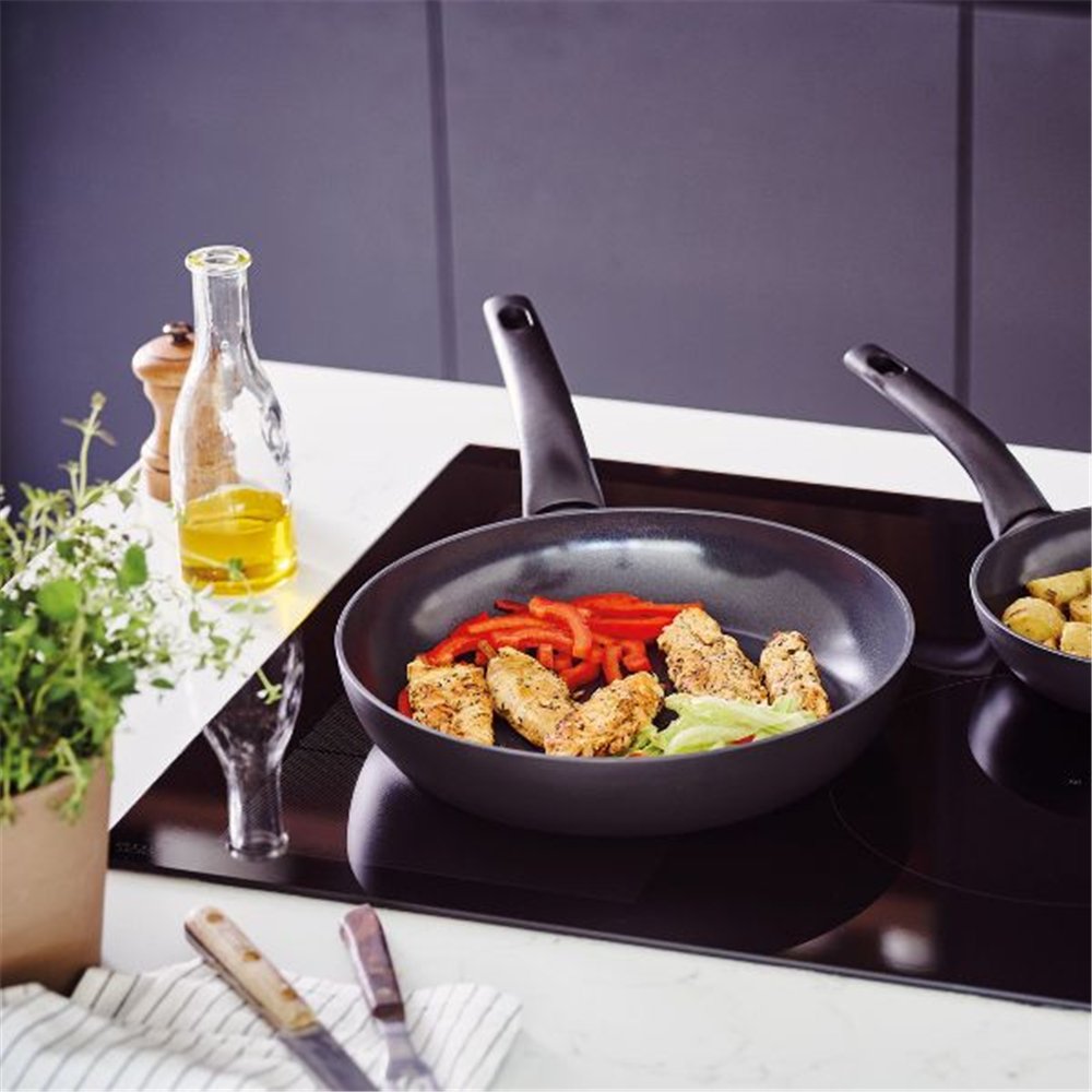 Existe en plusieurs tailles Poêle 24 cm - Kuro - Découvrez Kuro : une poêle à revêtement céramique entièrement noire alliant un design tendance et des propriétés fonctionnelles pour vous assurer le plaisir de cuisiner ! - En fonte d’aluminium, assurant une parfaite conductivité : économe en temps et en énergie - Excellentes propriétés anti-adhérentes grâce au revêtement céramique renforcé de Titanium : pour cuisiner sainement, très peu de matière grasse est nécessaire et l'entretien est facile !