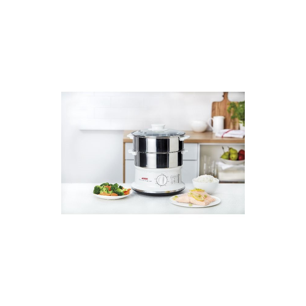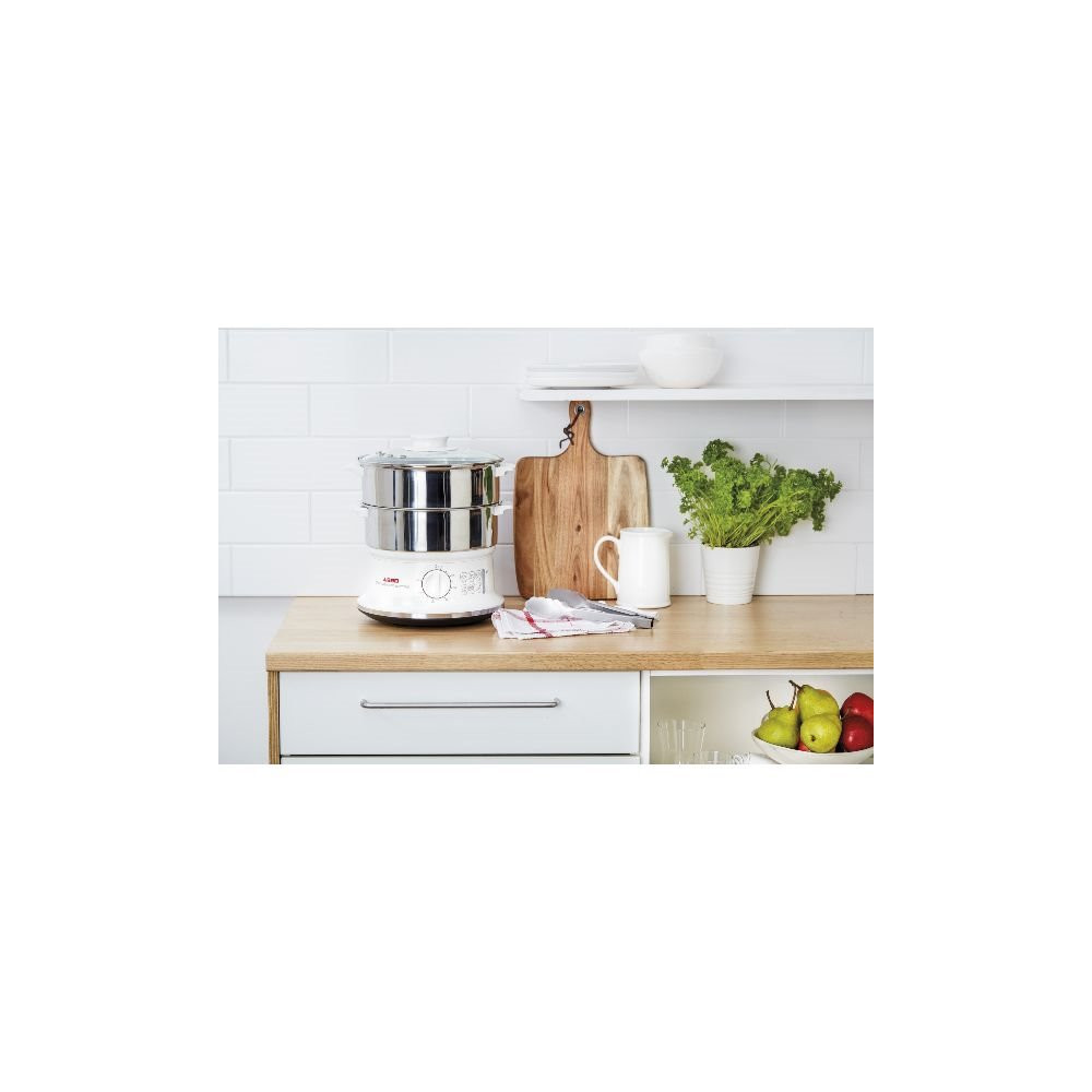 Les deux bols empilables permettent de cuire différents aliments en même temps — légumes, poissons, volailles — sans mélanger les saveurs. Gain de temps et d'énergie assurés. Le niveau d'eau intégré évite toute surprise en cours de cuisson et garantit des résultats homogènes à chaque utilisation. Parfait pour des menus variés et des portions adaptées, du repas individuel au dîner en famille.