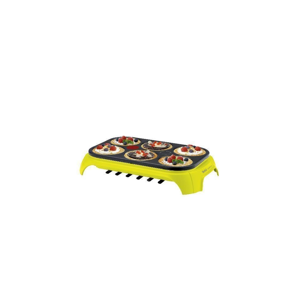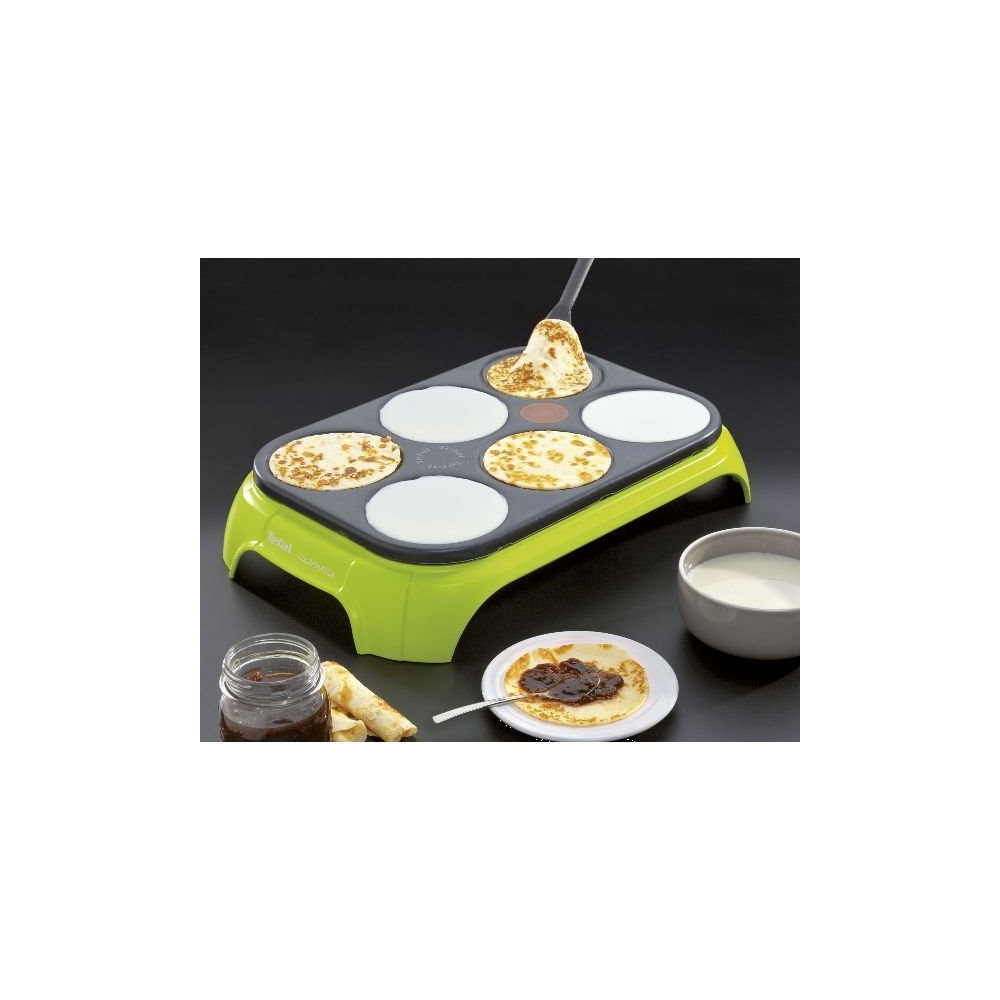 La grande originalité de ce modèle réside dans ses 6 empreintes rondes de 12 cm de diamètre, permettant de cuire simultanément 6 mini-crêpes dorées à souhait. Fini l'attente interminable devant la poêle : toute la tablée est servie en même temps. L'appareil bénéficie de la technologie TEFAL, gage d'une répartition homogène de la chaleur pour des crêpes cuites uniformément, sans zone froide ni brûlée.