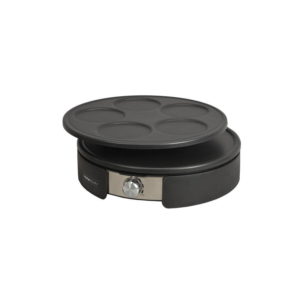 L'appareil est équipé de 2 plaques amovibles en aluminium avec revêtement anti-adhésif et rebord anti-débordement, garantissant une cuisson uniforme et sans accroche, facile à démouler. Le thermostat réglable à 5 positions permet d'adapter la chaleur selon la recette : crêpes fines sucrées, galettes de sarrasin épaisses, blinis ou pancakes, chaque préparation trouve sa température idéale.