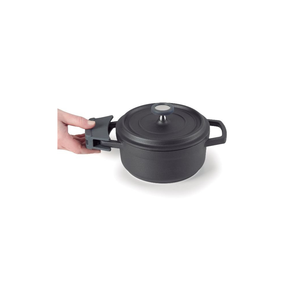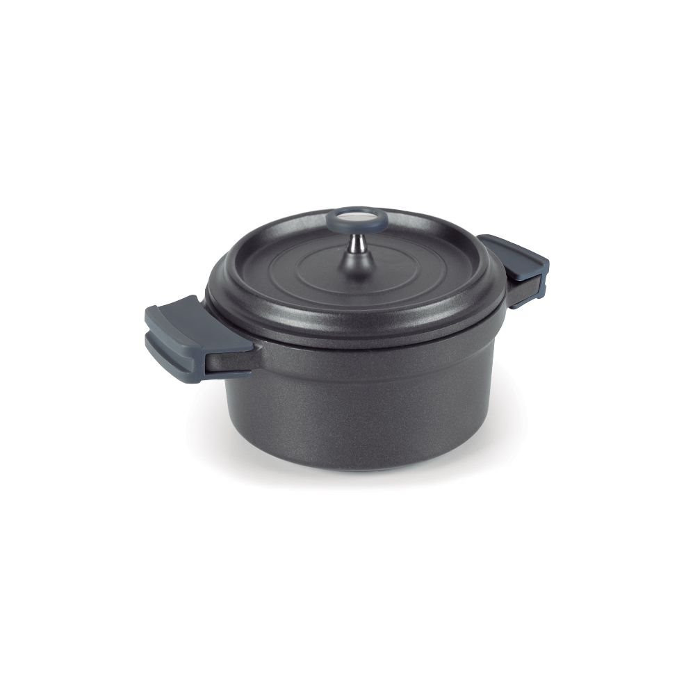 Existe en plusieurs tailles Cocotte ronde 28 cm Noire - Fundicion - La cocotte parfaite pour cuire tous vos plats : riz, viandes, poissons, légumes, plats mijotés, crèmes, sauces ou soupes ! - En fonte d'aluminium : garantit l'absorption et la distribution uniforme de la chaleur sans point de surchauffe - Les aliments ne perdent donc pas leur jus pendant la cuisson et conservent ainsi tous leurs nutriments et vitamines - Les picots, situés sous le couvercle, permettent aux gouttes, issues de la