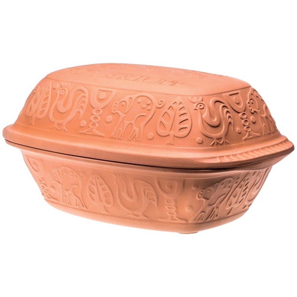 Ses dimensions généreuses de 39 x 27 x 19,5 cm permettent d'y loger jusqu'à 5 kg de viande ou de volaille. Idéale pour rôtir une dinde, une oie, du gibier ou de belles pièces de bœuf, cette cocotte diffuse la chaleur de manière douce et homogène, préservant le moelleux des chairs et concentrant les saveurs dans un jus naturel incomparable. Ce modèle est livré avec un livre de recettes offert pour vous lancer immédiatement.