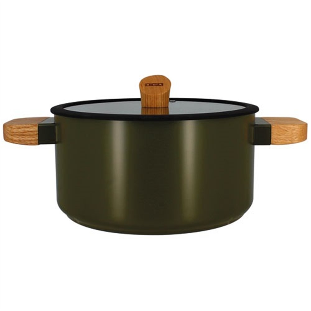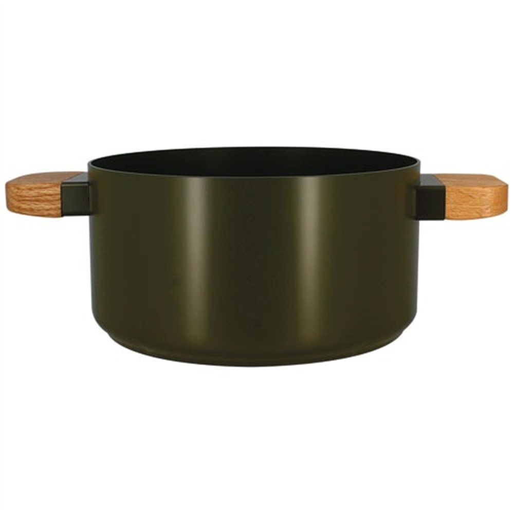 La gamme Ector s'est construite autour d'une identité forte : celle des forêts nordiques, de leur robustesse, de leurs contrastes entre bois brut et nature sauvage. Ce faitout en est l'un des représentants les plus complets — à la fois grand, solide et visuellement marquant. La teinte kaki s'impose comme le fil conducteur d'une collection pensée pour habiller les cuisines modernes avec caractère.