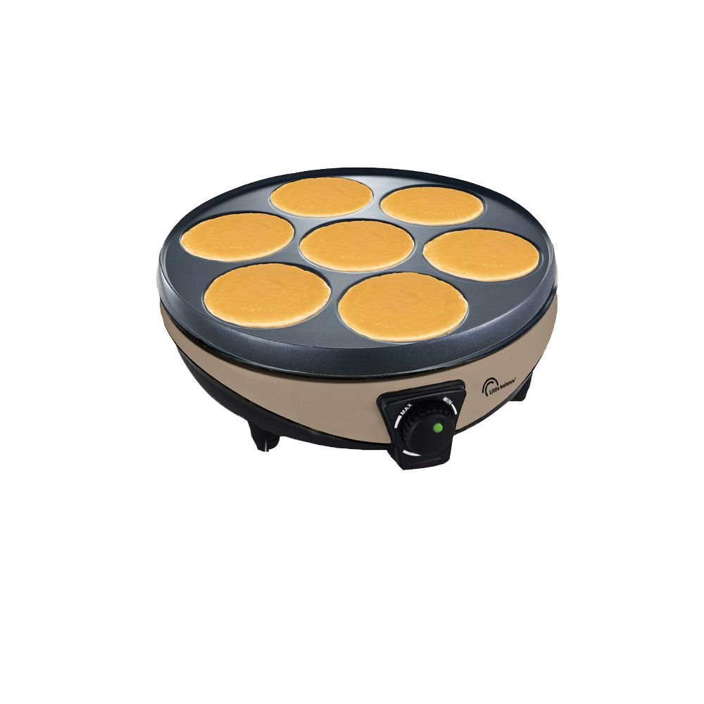Régalez-vous de crêpes maison avec la crêpière électrique LITTLE BALANCE Duo 1000 coloris Muscade, modèle 8694. Originale dans son concept, cette crêpière propose deux plaques amovibles interchangeables : une grande plaque pour réaliser des crêpes classiques de 30 cm de diamètre, et une plaque dédiée à la confection de 7 mini-crêpes ou pancakes simultanément.