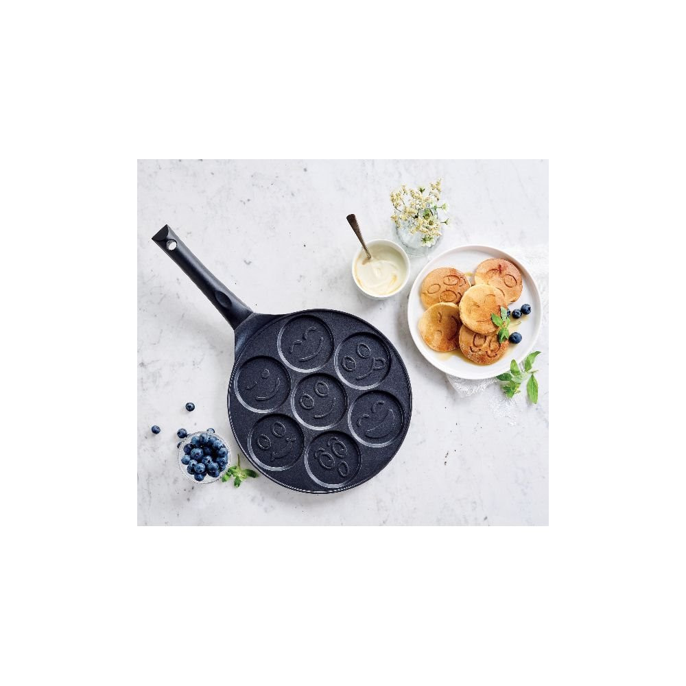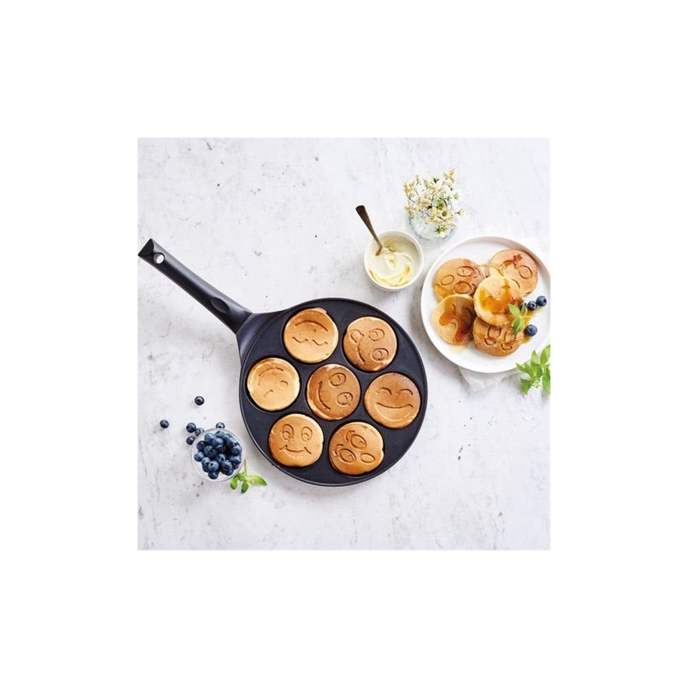 Mettez de la bonne humeur dans vos petits-déjeuners et goûters avec la poêle à blinis Smiley Kitchen Fun by BEKA ! Originale et ludique, elle permet de préparer 7 blinis en forme de smiley simultanément, pour le plus grand bonheur des petits comme des grands. Une façon amusante de varier les plaisirs à table.