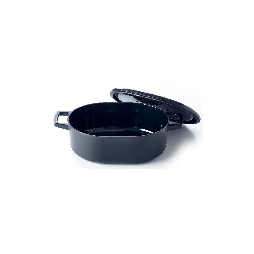 La forme ovale de 31 cm est un choix délibéré pour les pièces entières qui ne rentreraient pas dans une cocotte ronde standard. Le couvercle, légèrement bombé, favorise la condensation et le retour des jus sur les aliments pendant la cuisson, garantissant un résultat moelleux et gorgé de saveurs à chaque préparation.