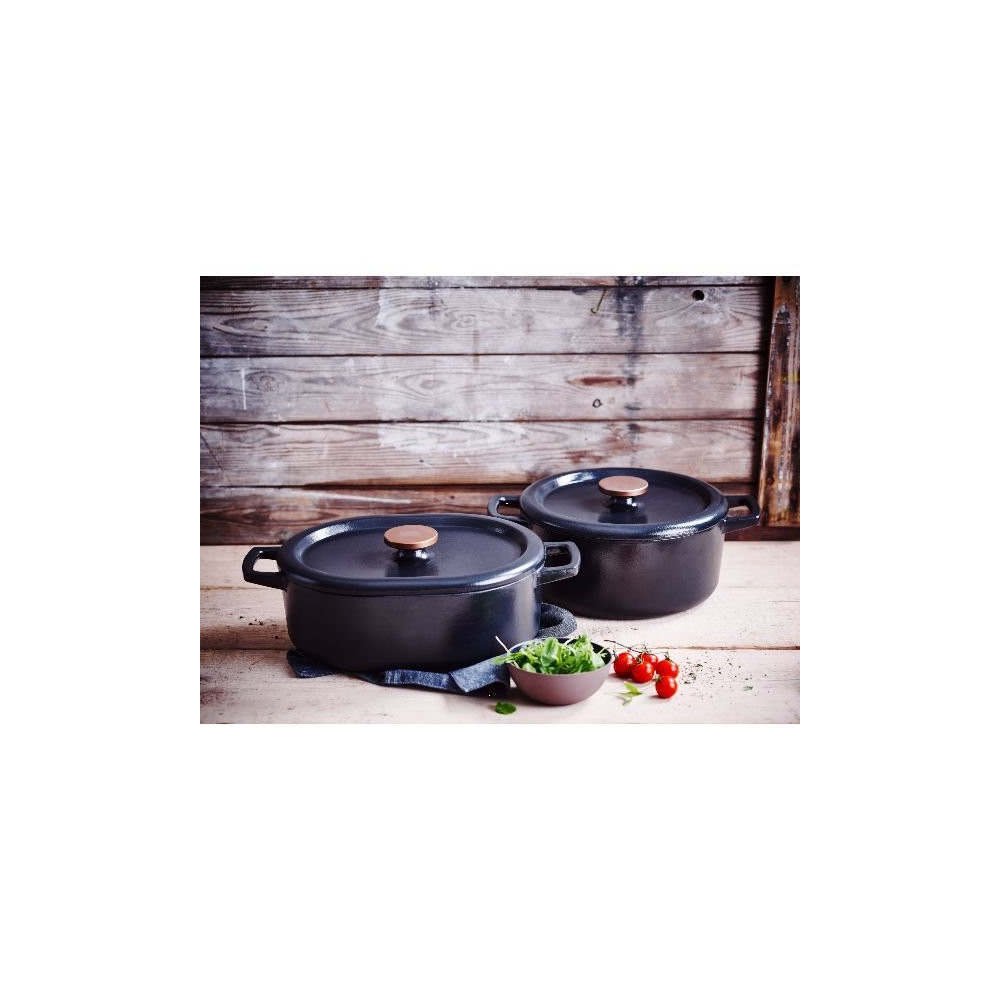 La cocotte ovale BEKA Nori 31 cm / 5,5 litres en fonte est la pièce maîtresse d'une cuisine généreuse et savoureuse. Sa forme ovale généreuse est taillée pour accueillir les grandes pièces — gigot d'agneau, poulet rôti, rôti de bœuf — et leur offrir une cuisson lente et homogène qui transcende les saveurs. Avec la collection Nori, BEKA prouve que la tradition et le design contemporain font bon ménage.