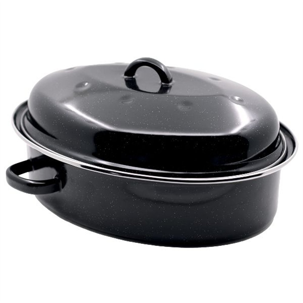 Existe en plusieurs tailles Daubière 32 cm - Roasty'Cook - Utilisez vos dons culinaires et préparez de délicieux plats dans cette daubière ! - Idéale pour la cuisson de viandes mijotés fondantes, de légumes savoureux, ou de rôtis ou volailles cuits à point - En acier émaillé avec revêtement en email noir moucheté : excellente répartition de la chaleur - Le couvercle permet de cuire vos rôtis et volailles sans éclaboussures et de garder ainsi un four toujours propre - Le couvercle permet un auto-