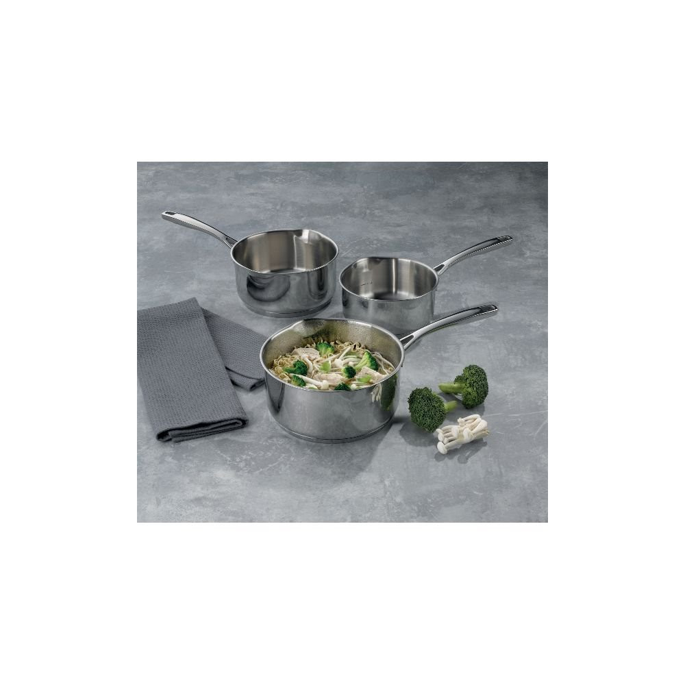 L'inox 18/10 est reconnu pour sa neutralité gustative, son excellente conductivité thermique répartie et sa facilité d'entretien. La casserole 20 cm est idéale pour préparer des sauces, des soupes, des féculents ou réchauffer des plats pour 3 à 4 personnes. L'ensemble de la série couvre tous les besoins du quotidien culinaire, des petites portions aux cuissons plus généreuses.