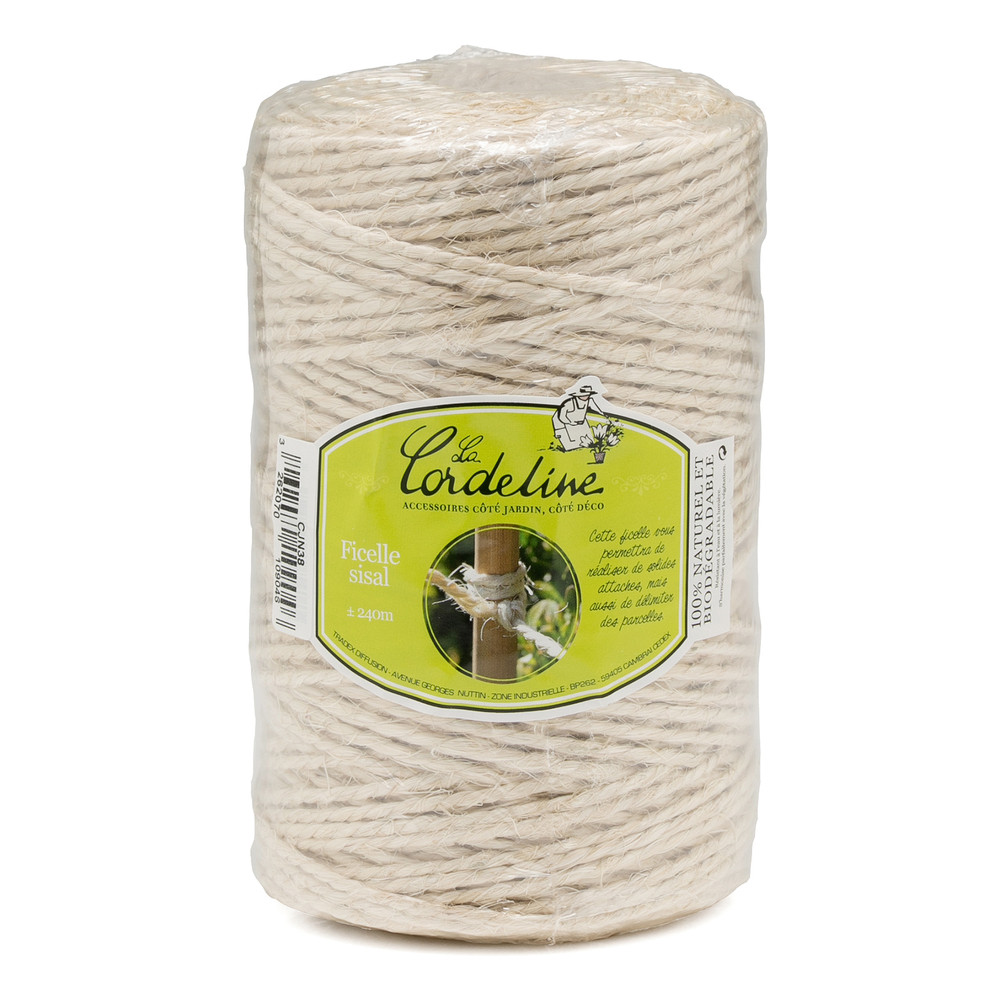 La pelote de ficelle sisal LA CORDELINE de 250 g est un classique indémodable du jardin et de la maison. Fabriquée à partir de fibres naturelles de sisal en 2 brins torsadés, cette ficelle résistante et souple répond à tous vos besoins de ligature, aussi bien en intérieur qu'en extérieur.