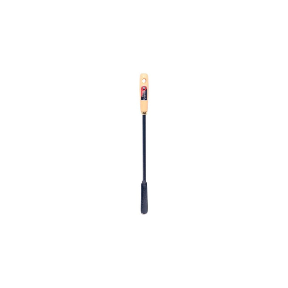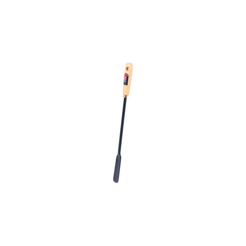 Sa tête est fabriquée en acier robuste avec un embout soigneusement affûté qui pénètre facilement dans les sols denses ou argileux. Le manche en hêtre, essence connue pour sa solidité et sa résistance aux chocs, offre une prise en main agréable et durable. L'ensemble de la gouge est pensé pour travailler avec précision, en ciblant chaque asperge individuellement sans perturber le reste du rang.