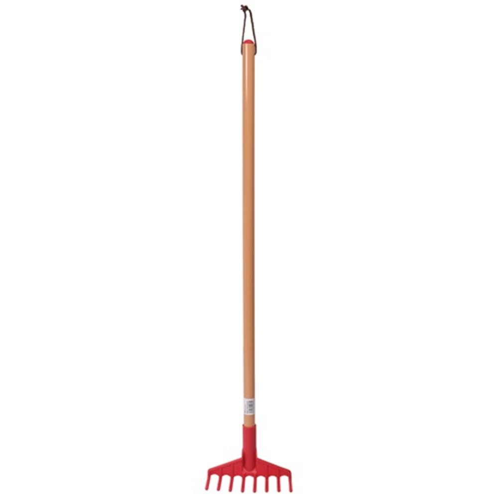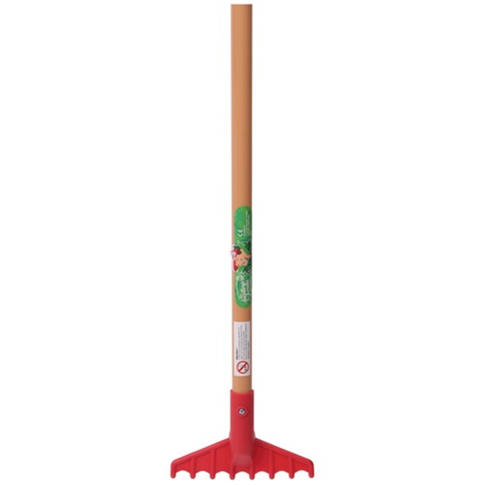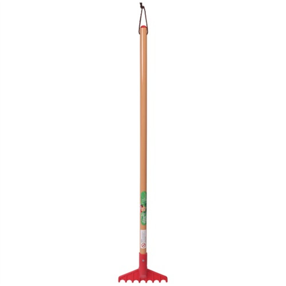 Avec ses 82,5 cm de hauteur totale, ce râteau permet aux enfants de ratisser debout, sans forcer et sans se courber. La tête en plastique est suffisamment rigide pour déplacer feuilles, copeaux ou terre légère, tout en restant inoffensive en cas de choc accidentel. Certifié Norme CE, il répond aux exigences de sécurité européennes en vigueur pour les jouets et outils destinés aux enfants.
