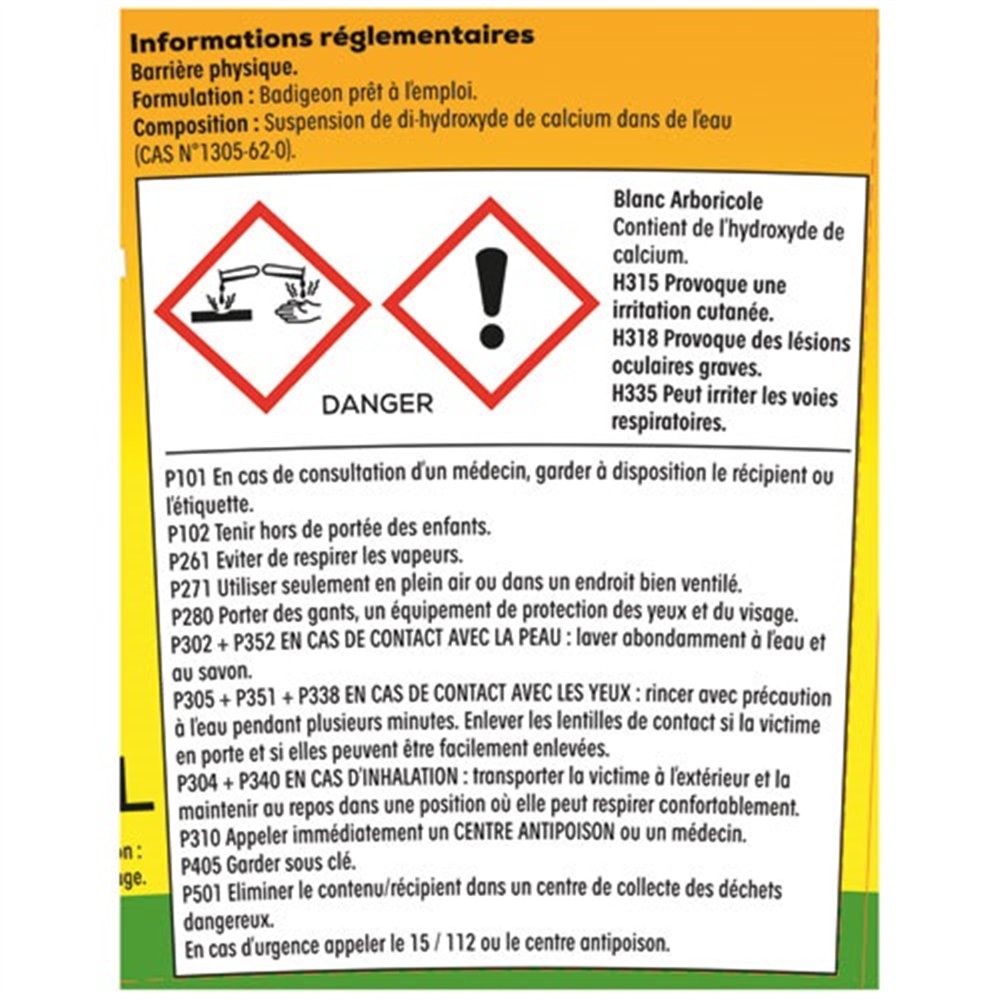 Indispensable au jardin en automne et au début du printemps, ce badigeon blanc s'applique sur les arbres fruitiers, les rosiers tiges, les jeunes plantations et les arbres d'ornement. Il protège le bas des troncs des écarts de température, des dommages causés par le gel et des attaques de parasites cherchant refuge dans les anfractuosités de l'écorce. Un geste simple et économique pour allonger la vie de vos arbres.