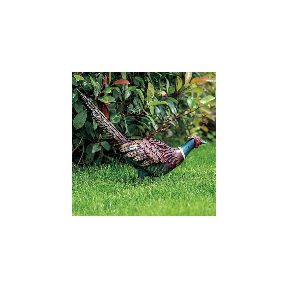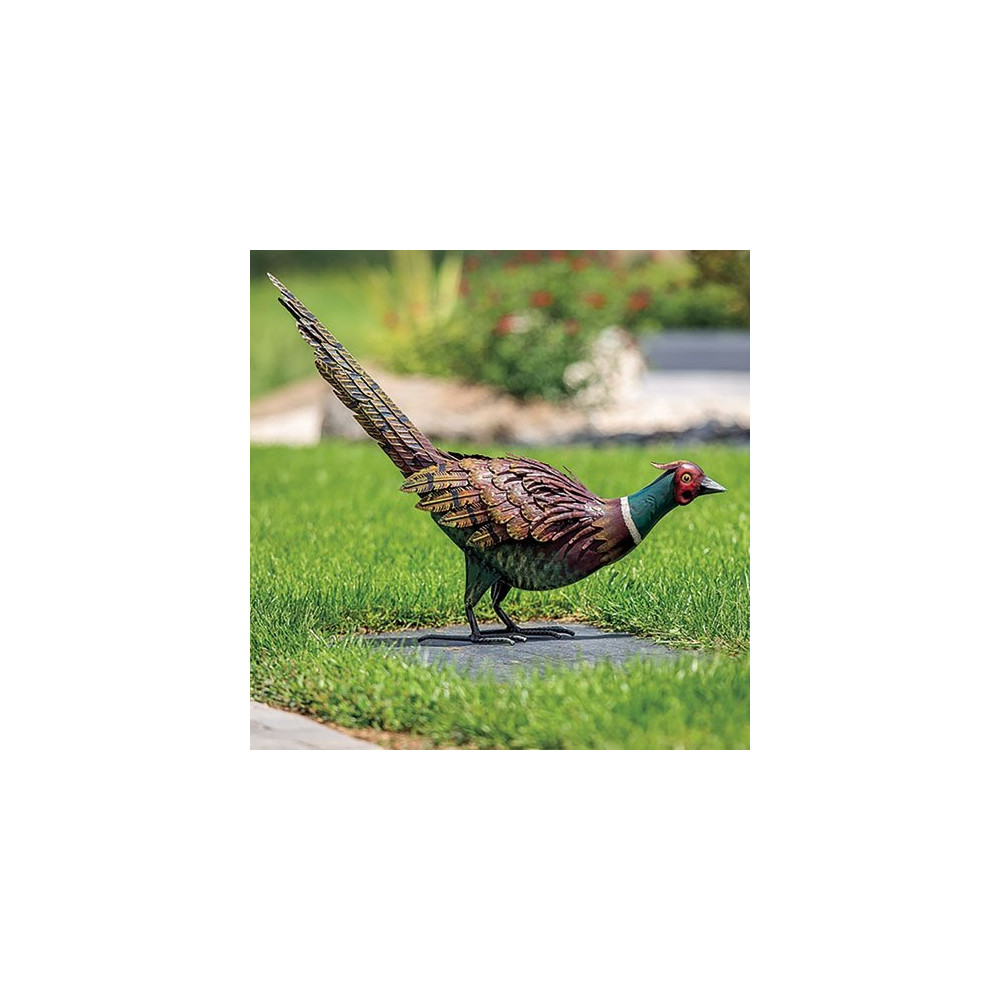Composé de deux parties distinctes à assembler — le corps et le plumage — ce faisan décoratif offre un résultat bluffant une fois monté, imitant avec élégance la silhouette caractéristique de l'oiseau. Sa fabrication en métal traité pour un usage extérieur lui permet de résister aux variations climatiques saisonnières sans perdre son attrait visuel.