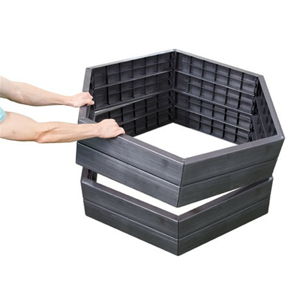Le carré potager Ergo est livré complet avec 6 parois et 6 systèmes de fixation, permettant un montage simple et rapide, entièrement sans outils. Sa conception en plastique de qualité est traitée anti-UV pour résister aux intempéries et conserver son aspect au fil des saisons, sans décoloration ni fragilisation.