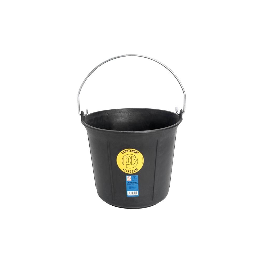 En caoutchouc flexogom pour usage intensif. Bords et parois renforcés, graduation intérieure.