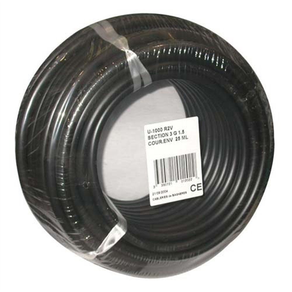 Le câble rigide U1000 R2V 3G2,5 mm² de couleur noire ELECTRALINE en couronne de 10 mètres est une référence incontournable pour les installations électriques résidentielles et tertiaires. Conçu selon la norme U-1000 R2V, il répond aux exigences de sécurité les plus strictes et convient aussi bien aux professionnels de l'électricité qu'aux bricoleurs avertis.