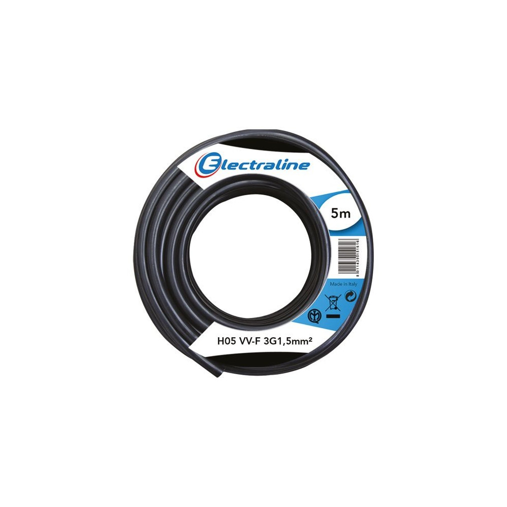 ELECTRALINE - Câble H05vvf 3g1.5 5 m noir